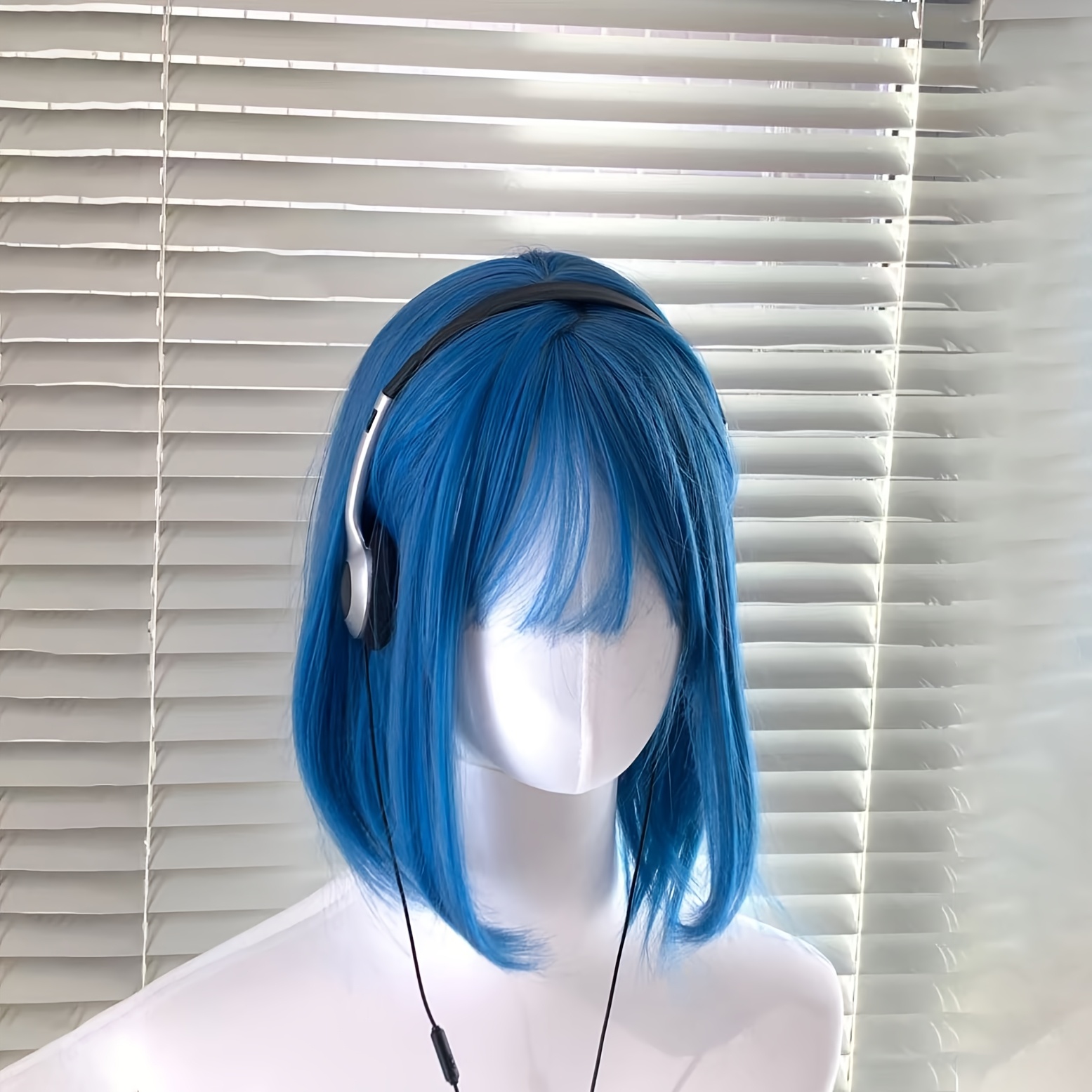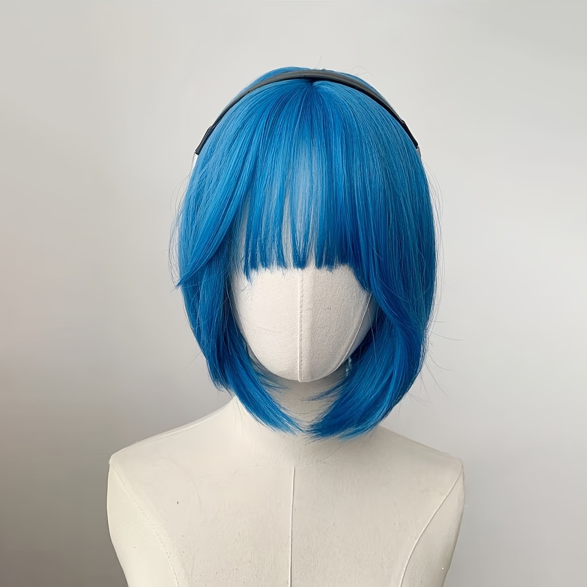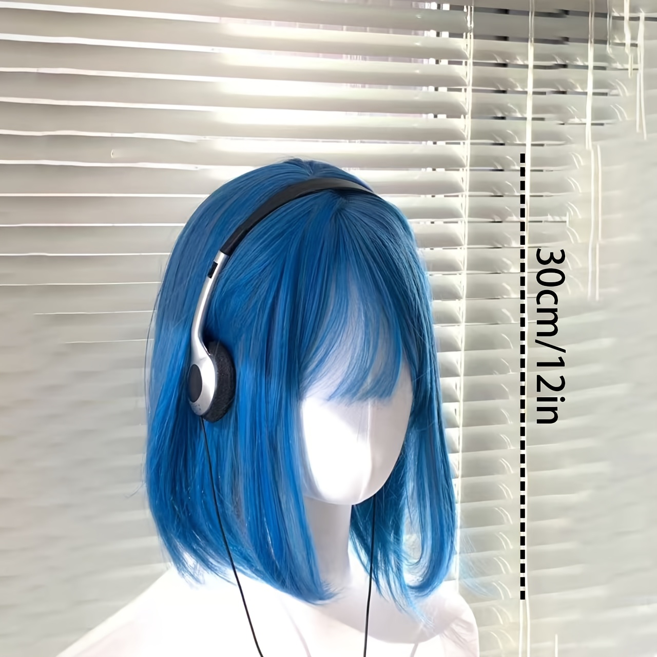 12\" Deep Sky Blue Wig | Sea Blue with White Bob Hair Girl Short Full Head | Heat Resistant | Suitable for Everyday Cosplay Holiday Parties | Comfortable and Breathable