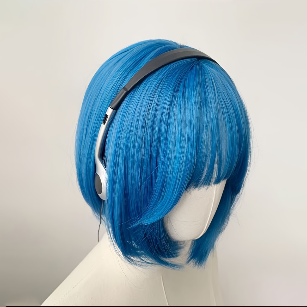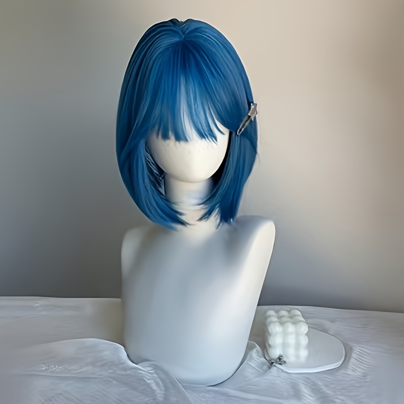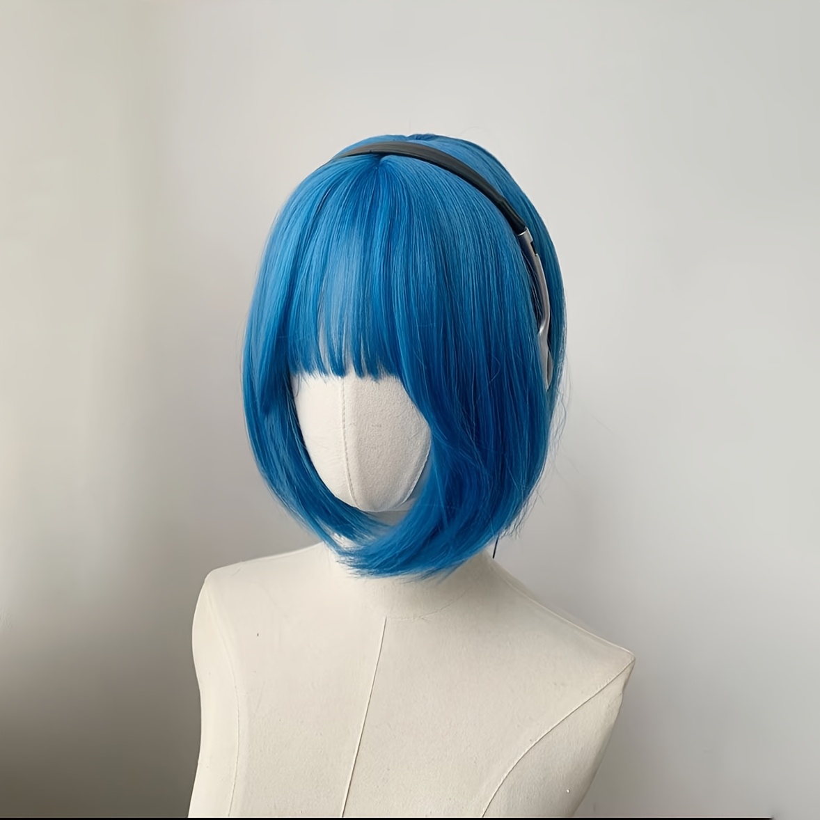 12\" Deep Sky Blue Wig | Sea Blue with White Bob Hair Girl Short Full Head | Heat Resistant | Suitable for Everyday Cosplay Holiday Parties | Comfortable and Breathable