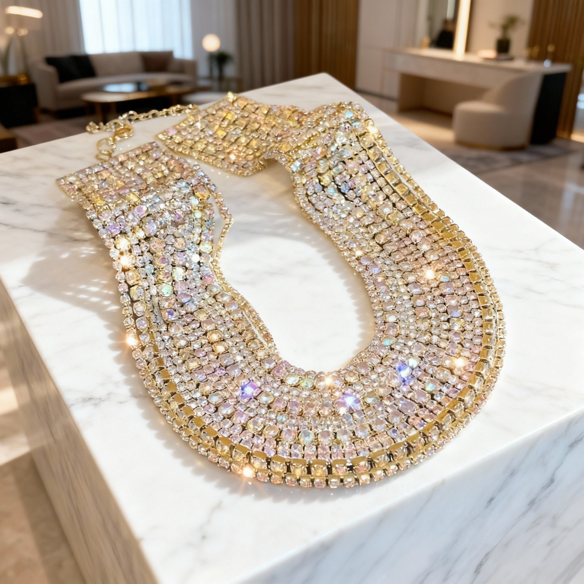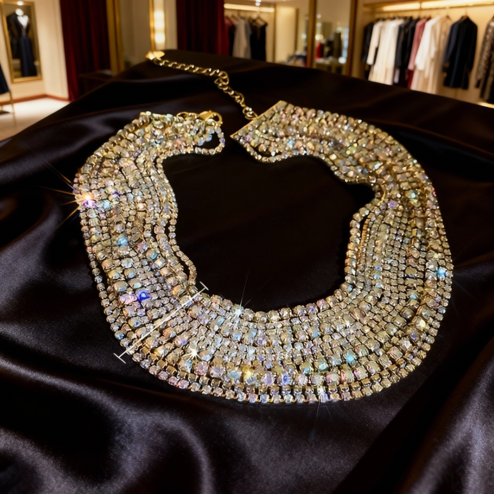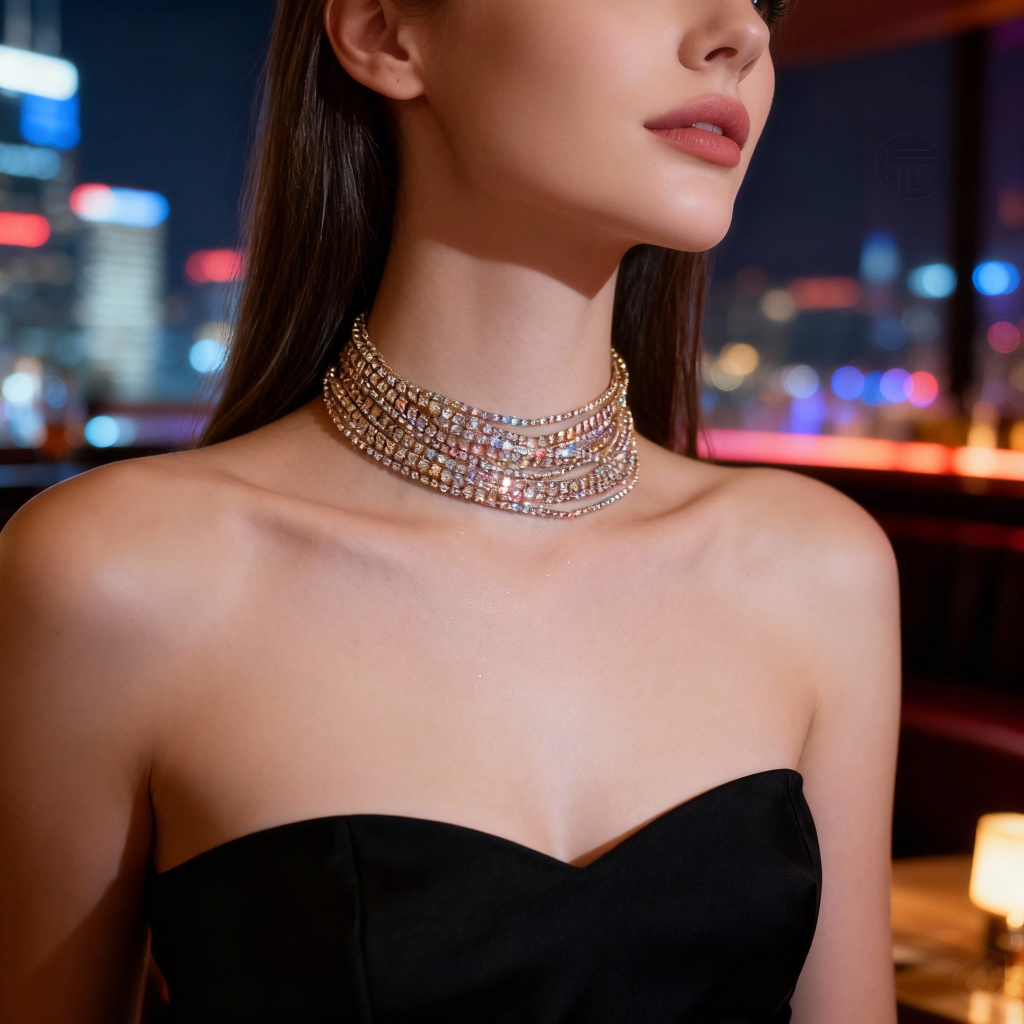 Stylish Multi-Layer Necklace for Women - Bold Geometric Collarbone Chain with Colorful Accents, Perfect for Evening Events and Casual Wear, Unique Layered Jewelry Piece