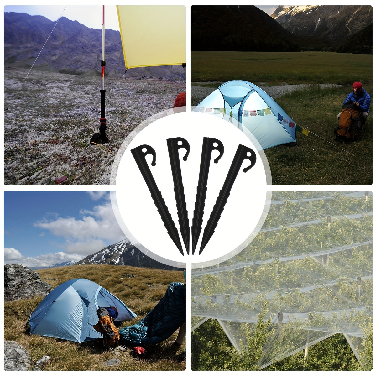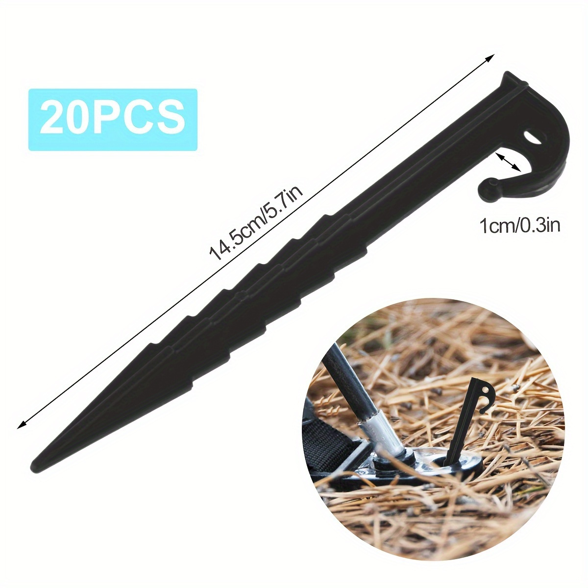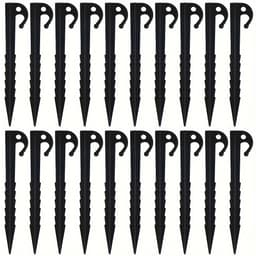 Set of 20 Robust Tent Stakes Featuring Pointed Hooks - Made from High-Refractive-Index Polymer Spiral Design for Stable Camping, Tarp, And Tent Installation on Various Surfaces Like Grass, Soil, Sand